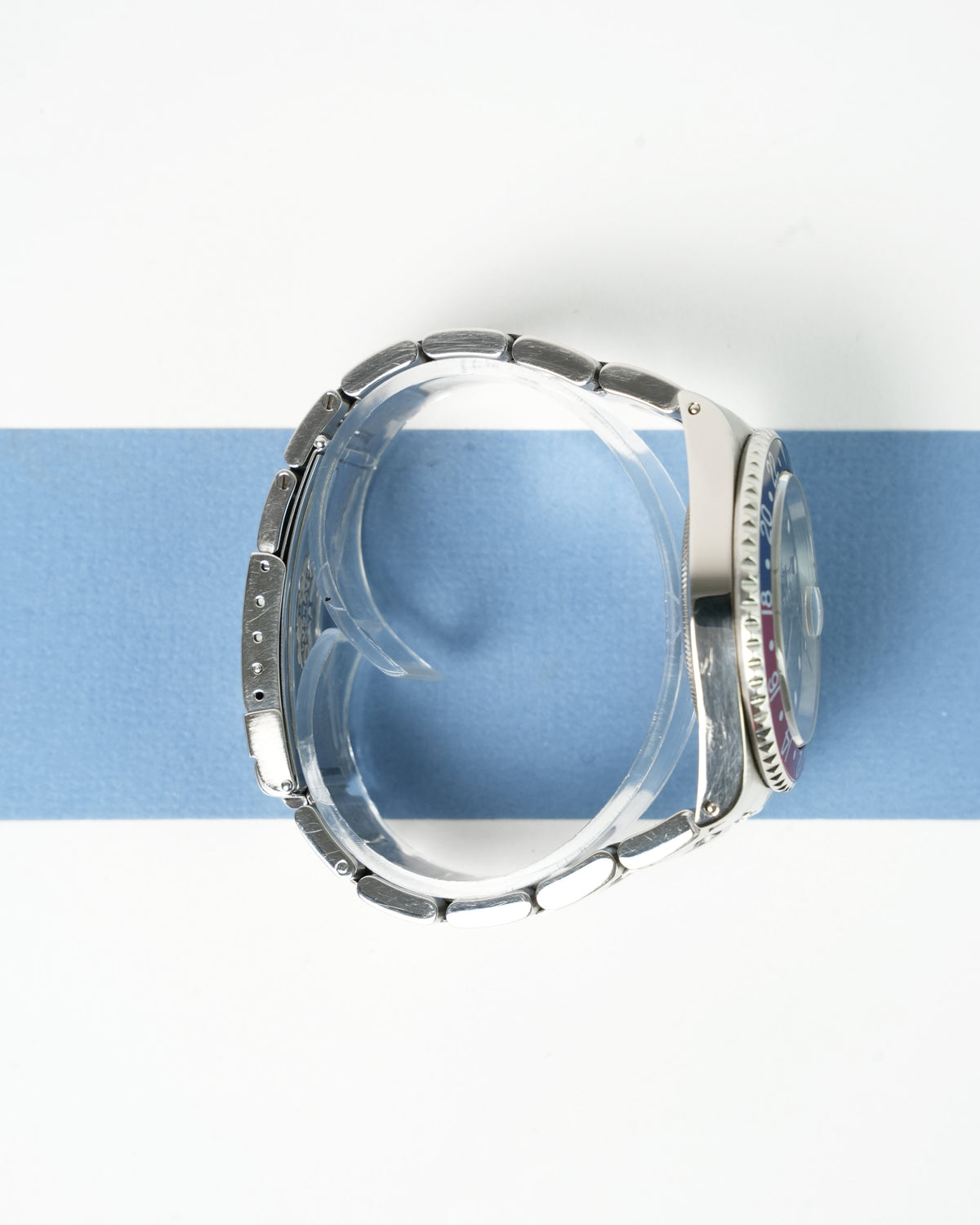 Die Rolex GMT-Master 16700 ist mehr als nur eine Uhr – sie ist ein Statement. Hergestellt zwischen 1988 und 1999, kombiniert sie zeitlose Rolex-Präzision mit der legendären zweifarbigen Lünette, die mühelos zwei Zeitzonen anzeigt. Das robuste Oyster-Gehäuse aus Edelstahl sorgt für Langlebigkeit und einen unverkennbaren Look.